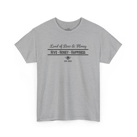 Hive Happiness Unisex Heavy Cotton Tee - Land of Bees & Honey Design